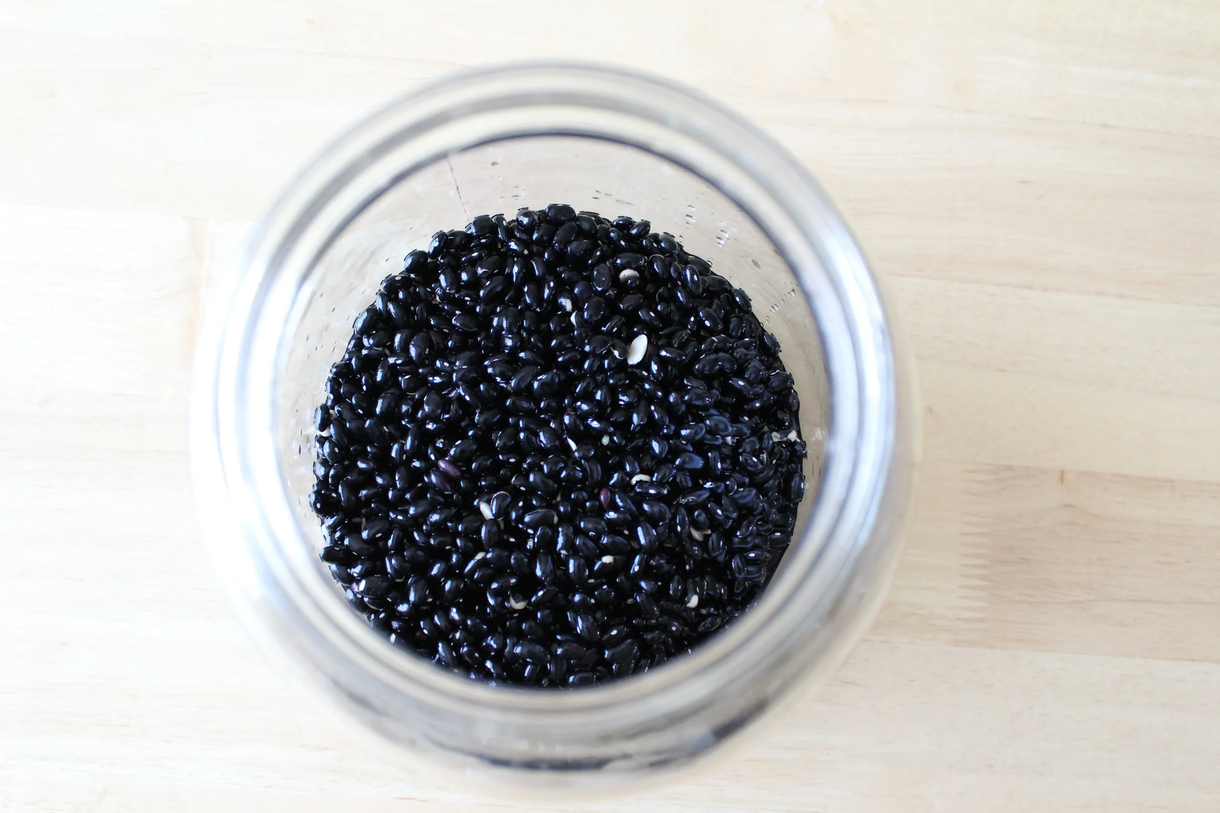 Rinse 4-5 cups black beans in a strainer under cold water.