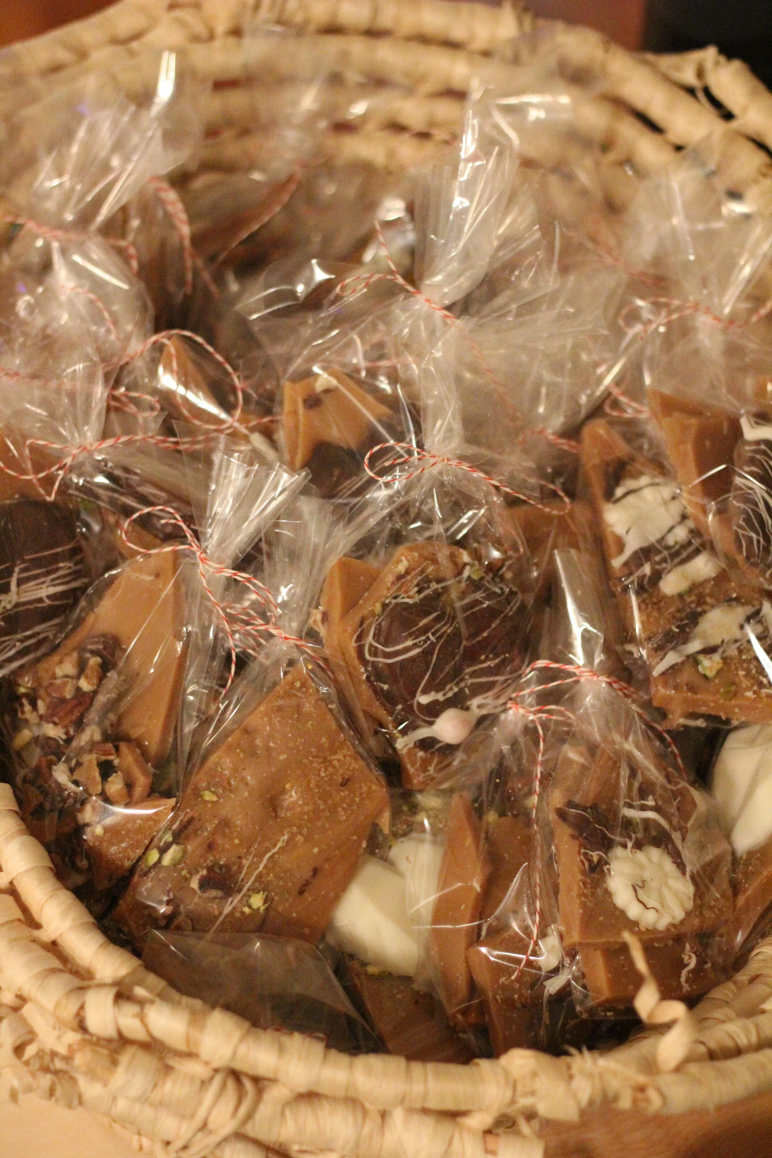 After making several batches of my favorite toffee recipe, I had to figure out a way to wrap them up. Originally I was going to use cellophane to make them look more “giftly” but I didn’t have enough and really didn’t want to buy any. Then I had an aha moment. Tissue paper!! Pretty and eco friendly!