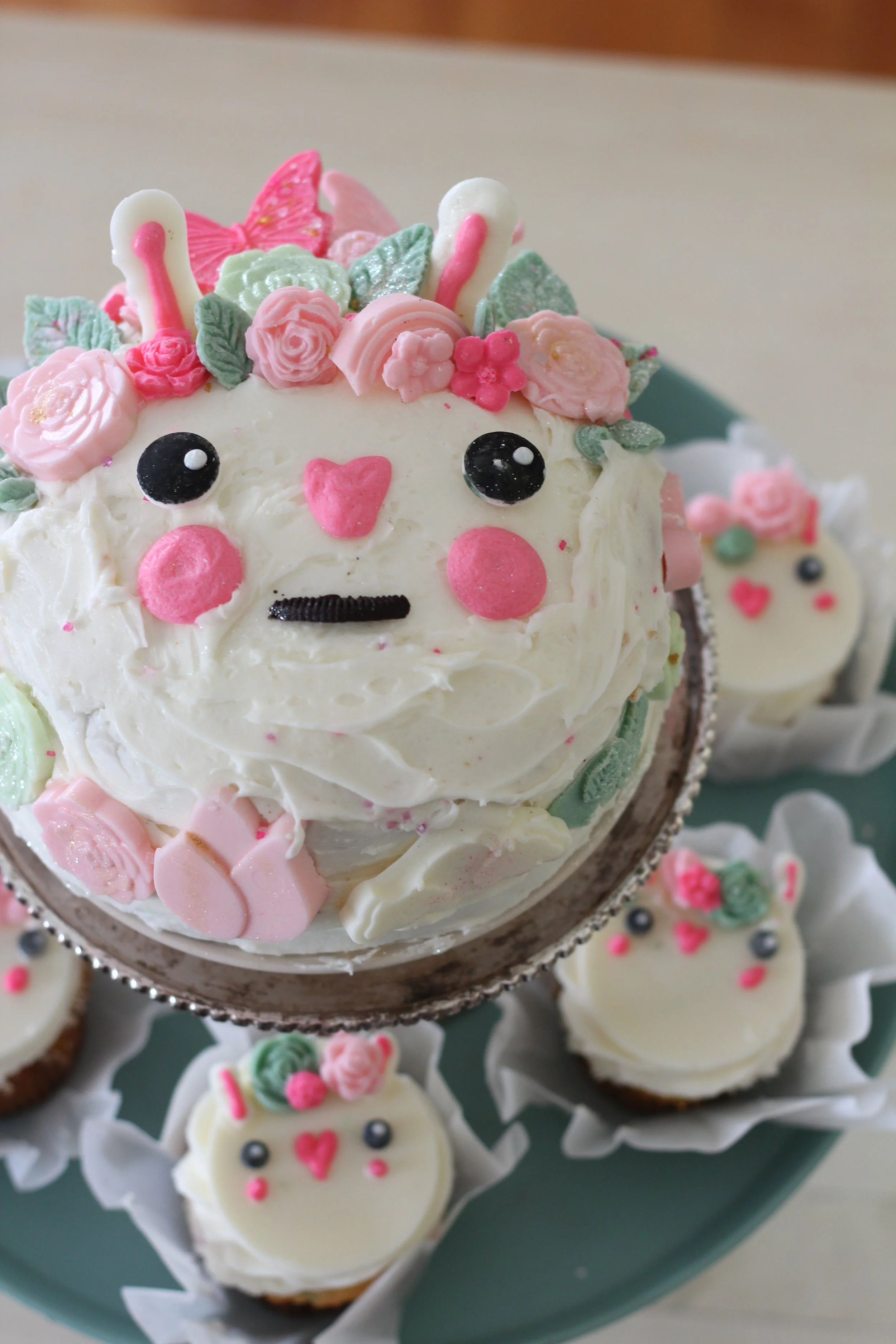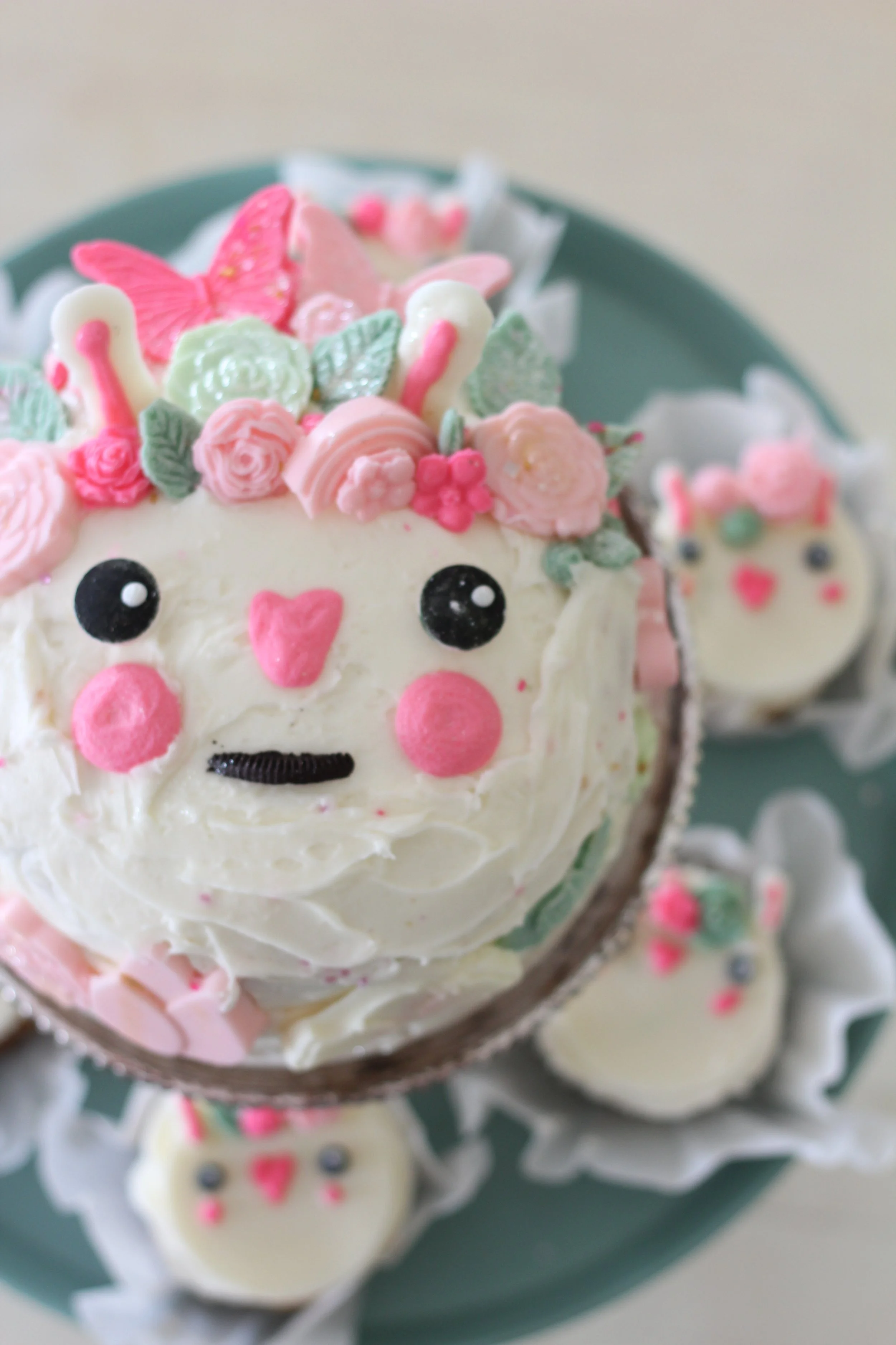 The bunny cake itself was honestly just as adorable even though it resembles some sort of Kawaii martian. The ears turned out a little narrow but that gives it its endearing martian-ness. I had lots of leftover white chocolates and turned me little girl loose on her birthday cake. I think it turned out perfect!