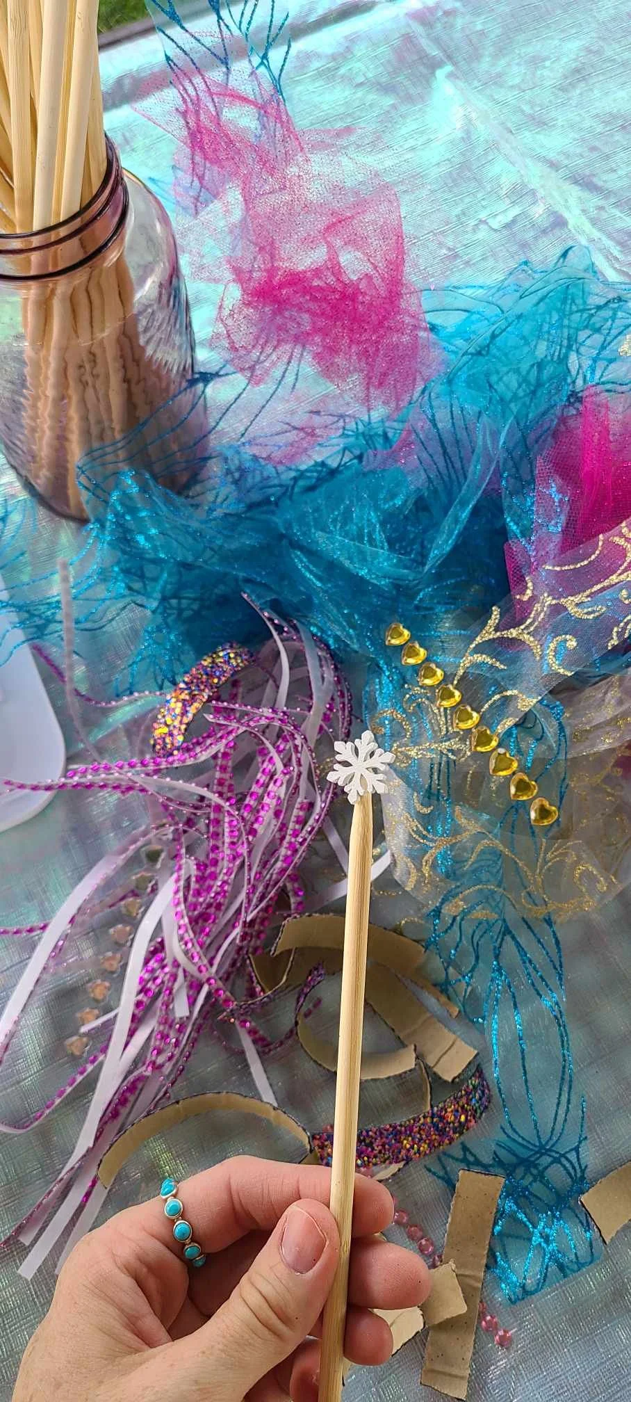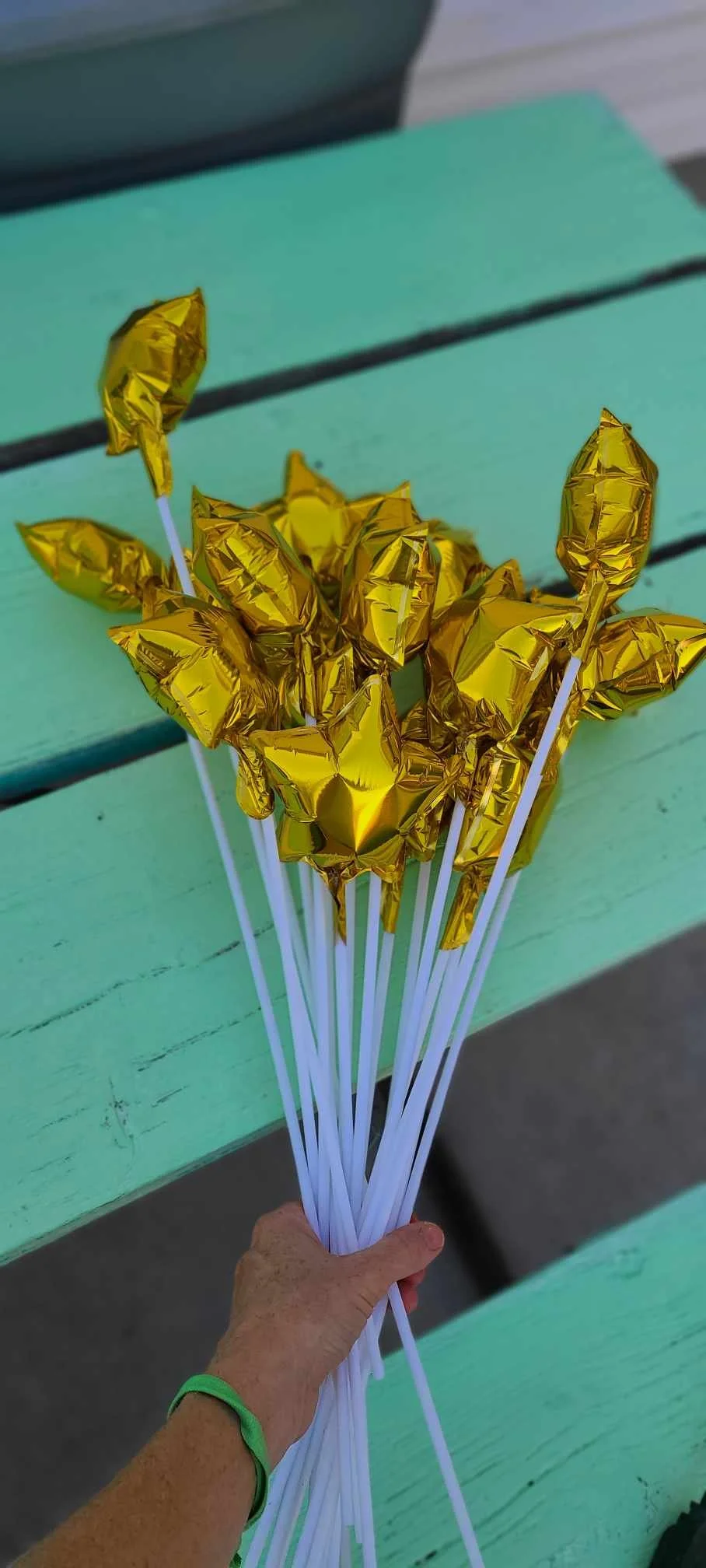 As well as homemade foil star balloons on sticks
