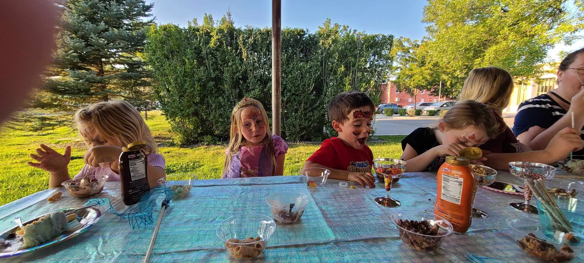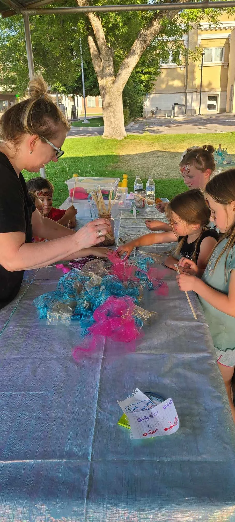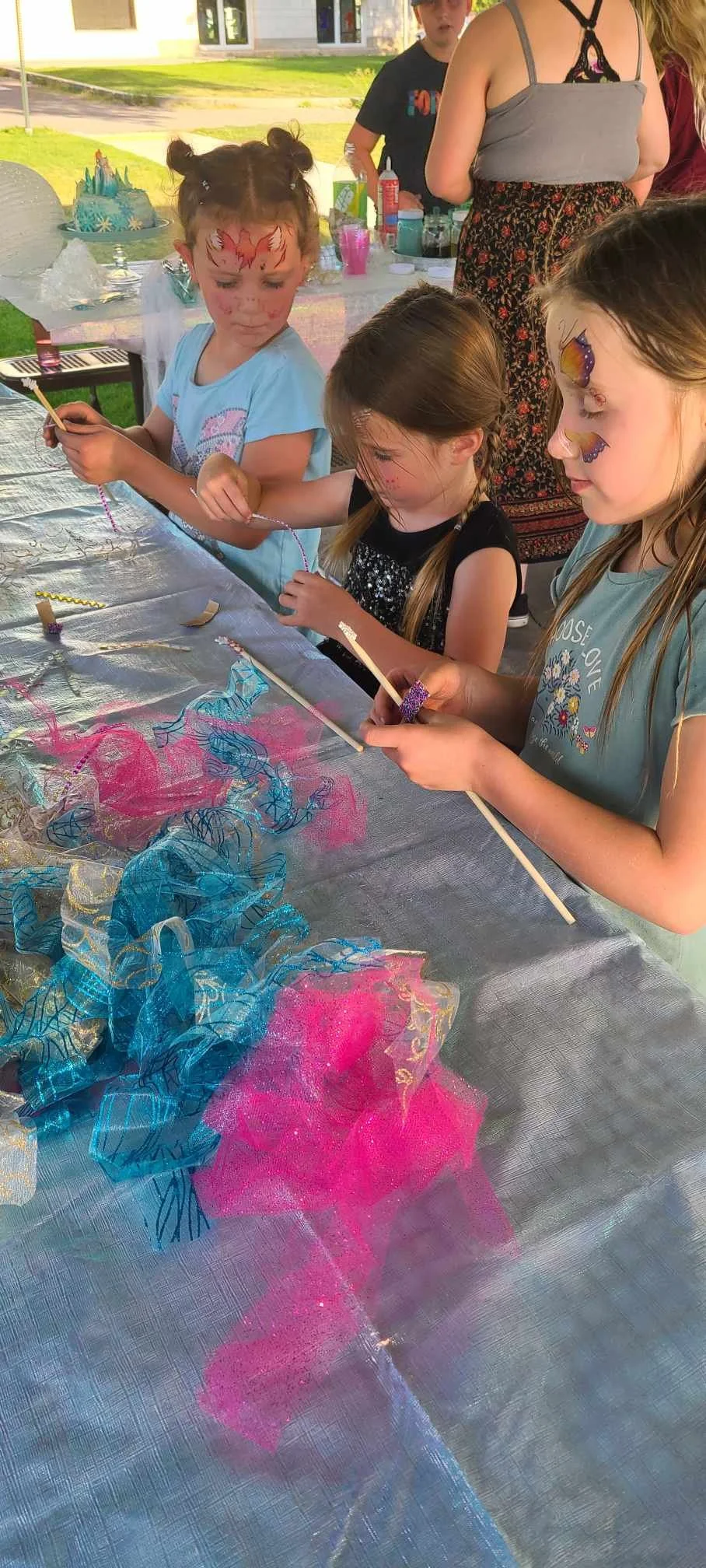 This was the first project we did and was the biggest hit! It was such an easy and fast alternative to face painting. I just had a bottle of water and a rag and pressed it on each kid’s face for 30 seconds. They loved picking out a face and it was something that they could enjoy even after the party. I even got a cute mirror from the dollar store for their “big reveal”! They all squealed with excitement when they each got to see their face! Some of the tattoos didn’t go on quite straight but I just pretended I knew what I was doing (I didn’t) and they didn’t even notice! Tattoo Facepaints: 10/10 Would recommend!